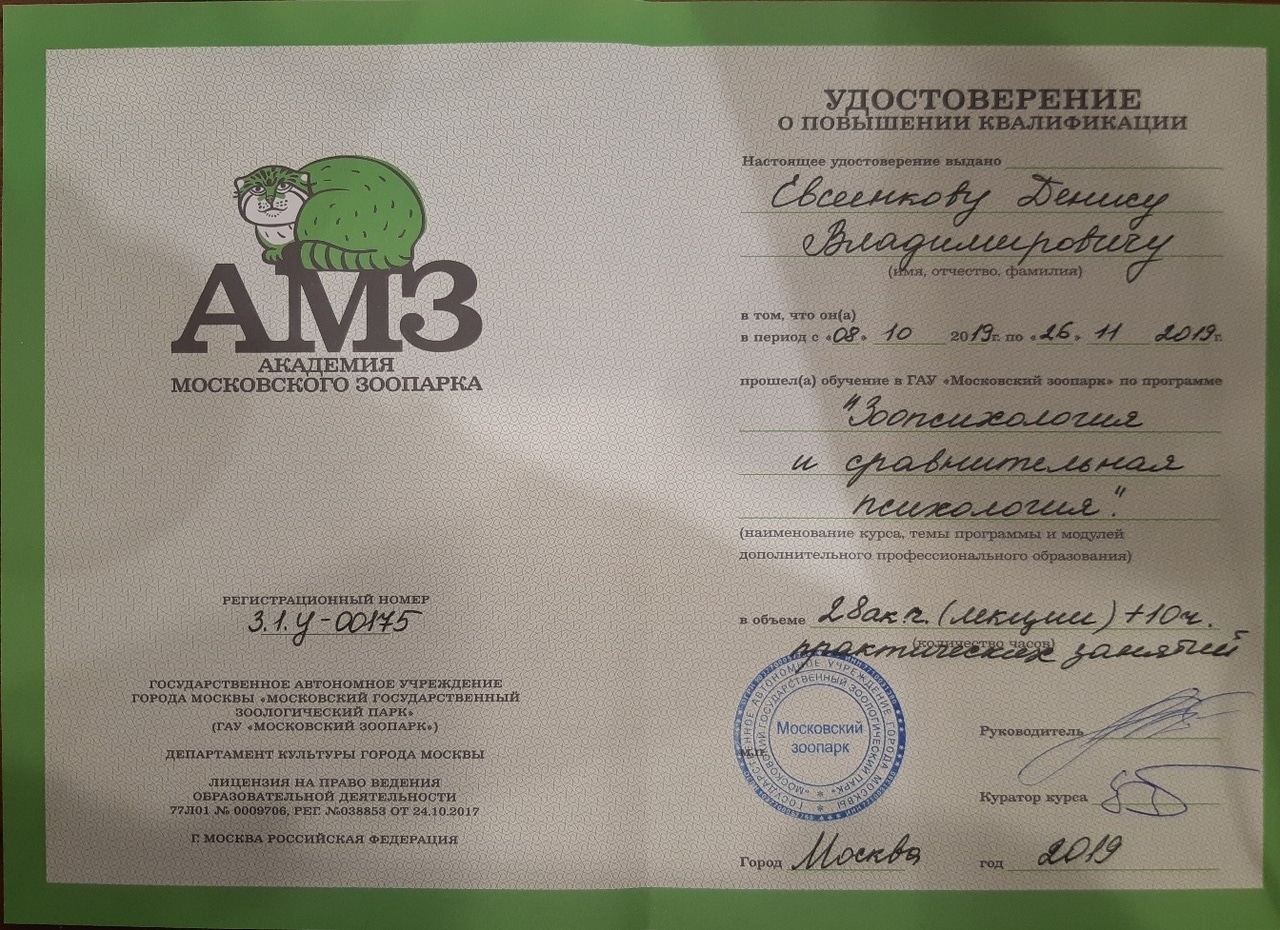 Ассоциация Прикладной Зоопсихологии, СПб - "Кинолог. Зоопсихолог-консультант"